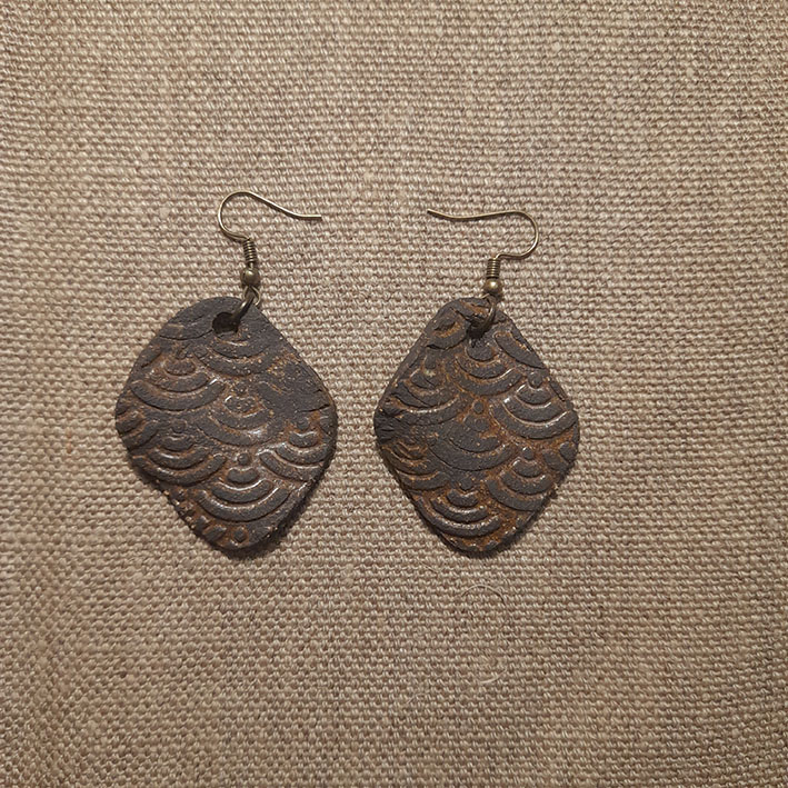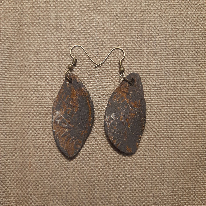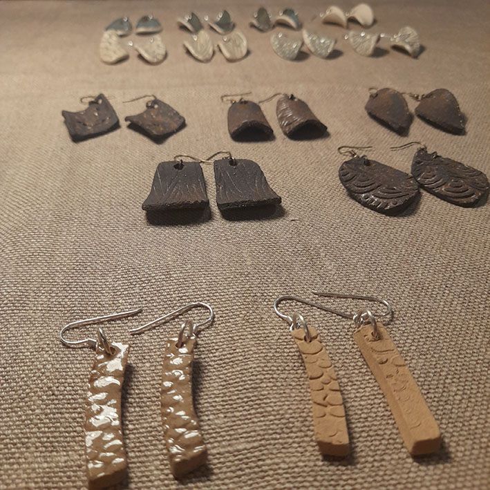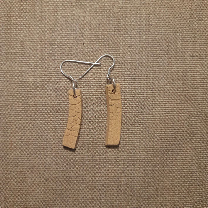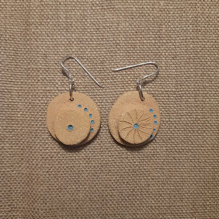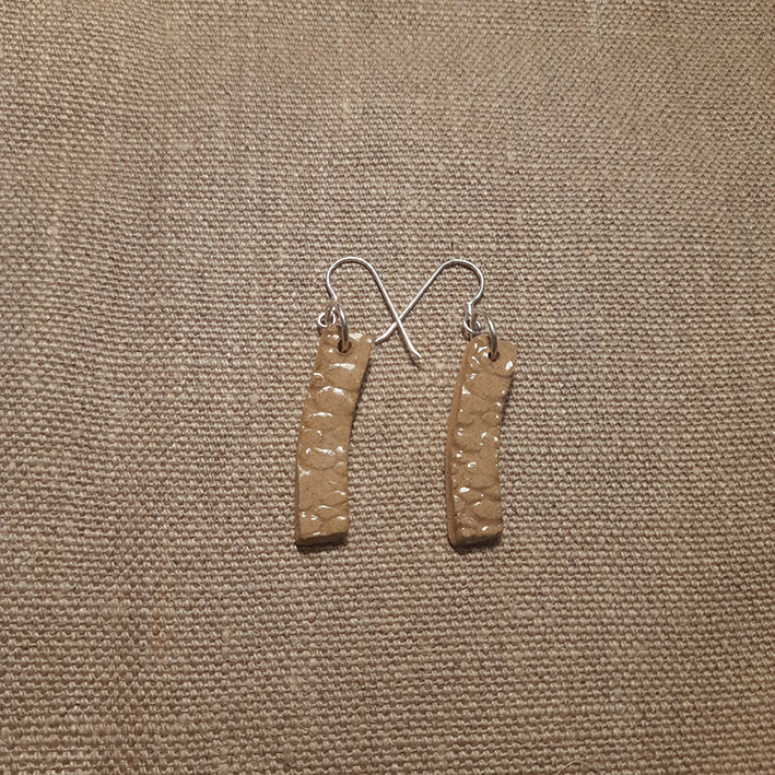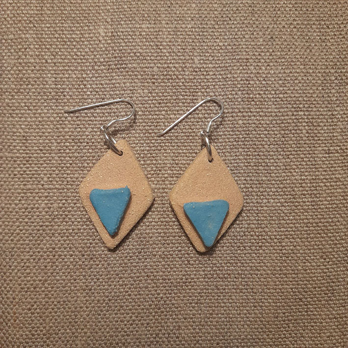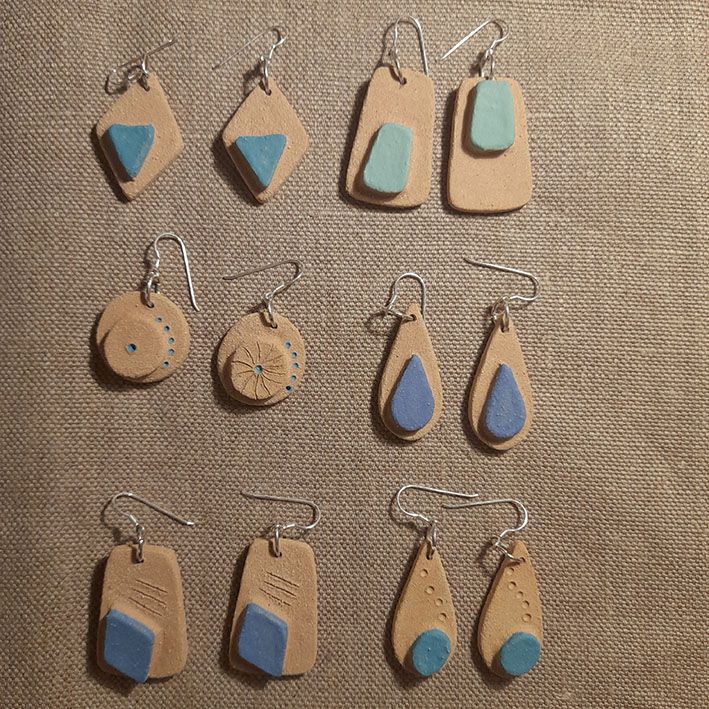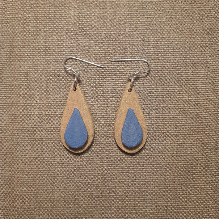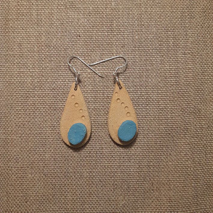 Toutes nos boucles d’oreilles sont réalisées à la main dans notre atelier du Morbihan. Elles sont faites en différents grès, des terres à cuisson haute température, très résistantes une fois cuites. Certaines sont décorées à l’engobe, mélange de terre, d’eau et de colorants qui donne des couleurs vives. Certaines sont ensuite émaillées, ce qui donne le côté lisse et brillant, les couleurs finales et certains effets colorés que vous pouvez observer. Les motifs, le poids, la taille, peuvent varier d’une pièce à l’autre, celles-ci étant toutes des pièces uniques ! Les pendants sont hypoallergéniques.
